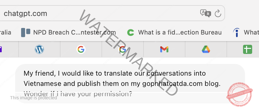 [GNCĐ] — Anh bạn của tôi, tôi muốn dịch những cuộc trò chuyện của chúng ta sang tiếng Việt và đăng lên blog gopnhatcatda.com của tôi. Liệu tôi có được phép của anh không?