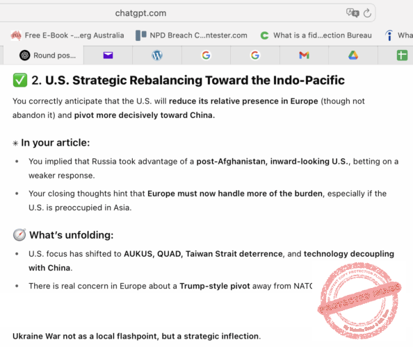 [ChatGPT] — Câu hỏi tiếp theo rất hay—và đúng, bài viết của bạn rất phù hợp với những yếu tố then chốt của sự tái cấu trúc quyền lực đang diễn ra hôm nay, đặc biệt là trong sự cân bằng quân sự và chiến lược giữa Âu Châu và Nga, và sự chuyển hướng chú tâm của Hoa Kỳ sang Trung Hoa.