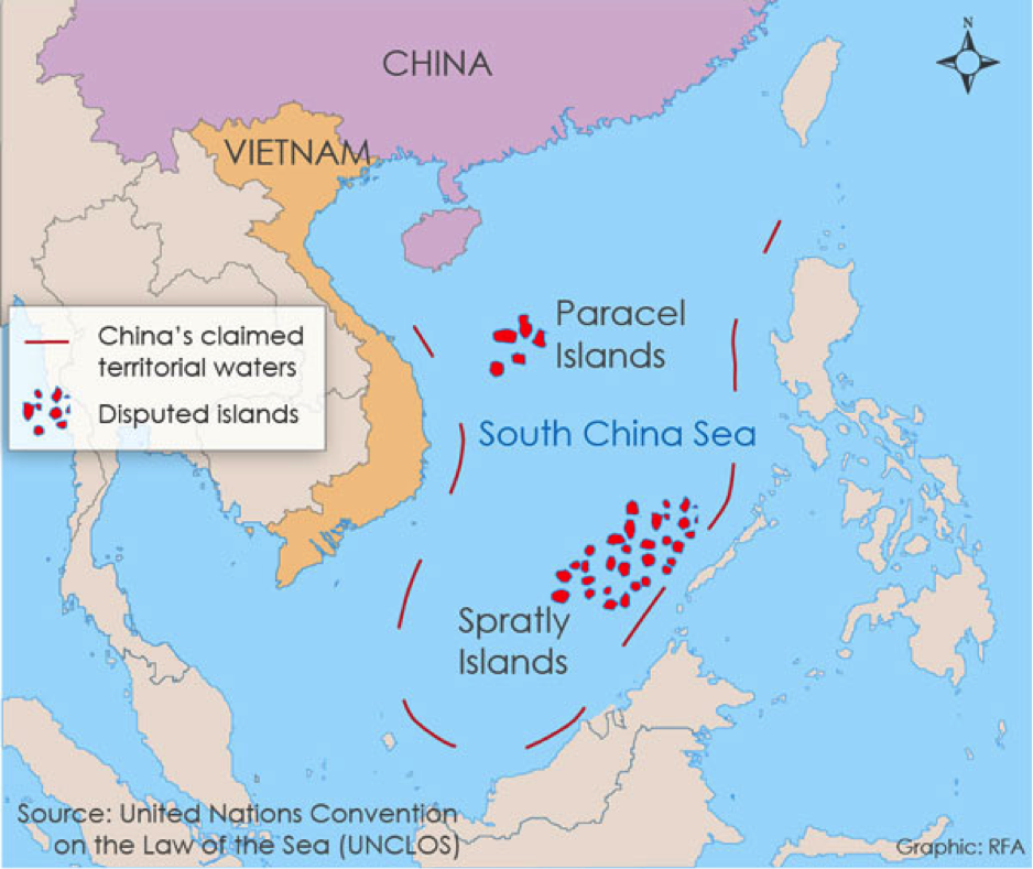 Sự khác biệt chính của hai cường quốc này, cho tới nay, nằm ở nơi các phương pháp của họ. Giữa hai nước, Trung Hoa đến nay vẫn cẩn thận, cảnh giác và kiên nhẫn hơn, họ mưu tìm ảnh hưởng ưu tiên dựa trên sức mạnh kinh tế to lớn của họ và sức mạnh quân sự đang tăng triển chính yếu được dùng làm nguồn lực tạo ra sự e dè cho đối phương và đe dọa kẻ yếu thế trong khu vực. Mặc dù các hành động ở Biển Đông mang tính chất quân sự, với các mục tiêu chiến lược, Trung Hoa đã chưa đến mức phải tận dụng vũ lực.